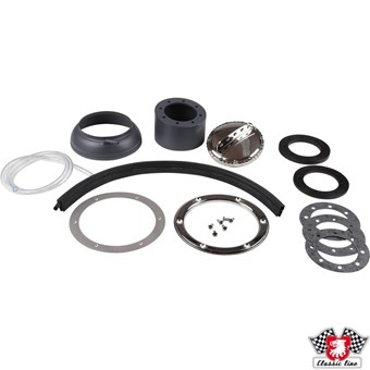 RSR Kraftstoffeinfüllsatz mit Deckel. Dieses Satz ermöglicht das Einfüllen von Benzin durch die Mitte der Frontklappe, auch wenn diese geschlossen ist.