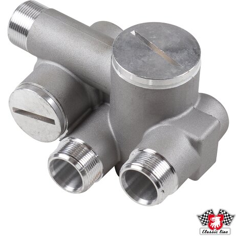 Ölthermostatgehäuse, außen. Mit Anschlüssen für Ölleitungen